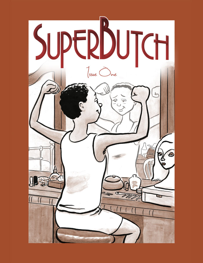 SuperButch is a graphic novel in progress about a lesbian superhero in the 1940s who protects the bar scene from corrupt cops, and about the women in the community SuperButch protects.