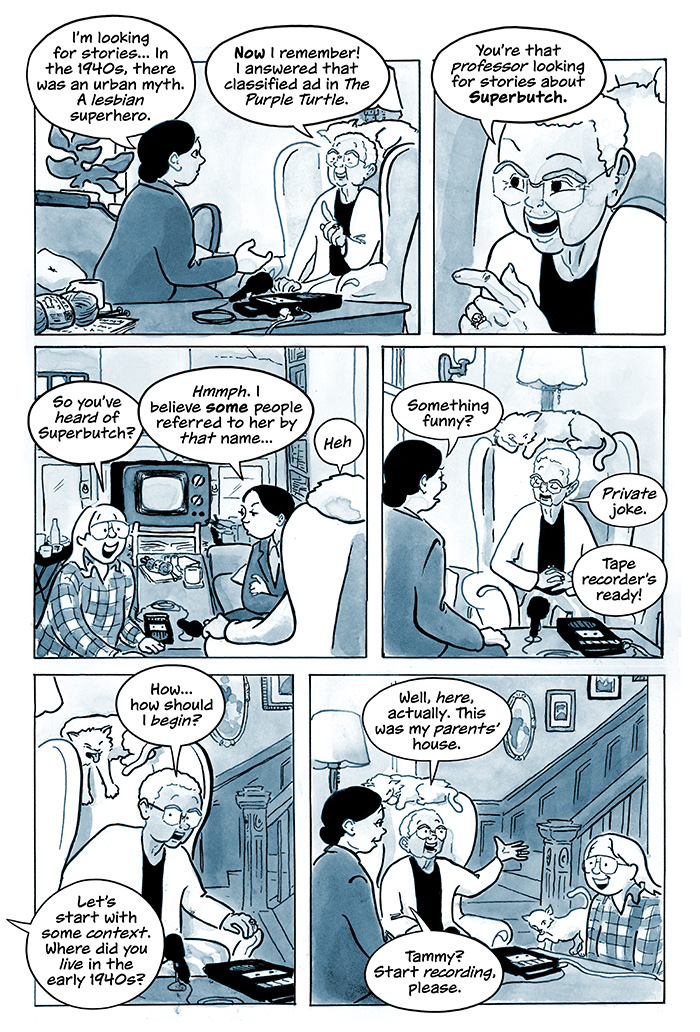 Issue One opens in the 1980s, with two academics interviewing the elderly Lillian Lewis, in the hopes of finding out whether SuperButch was real, or merely an urban legend. In the 1940s, Lillian Lewis was a reporter in search of a great story, while trying to keep some secrets of her own...
