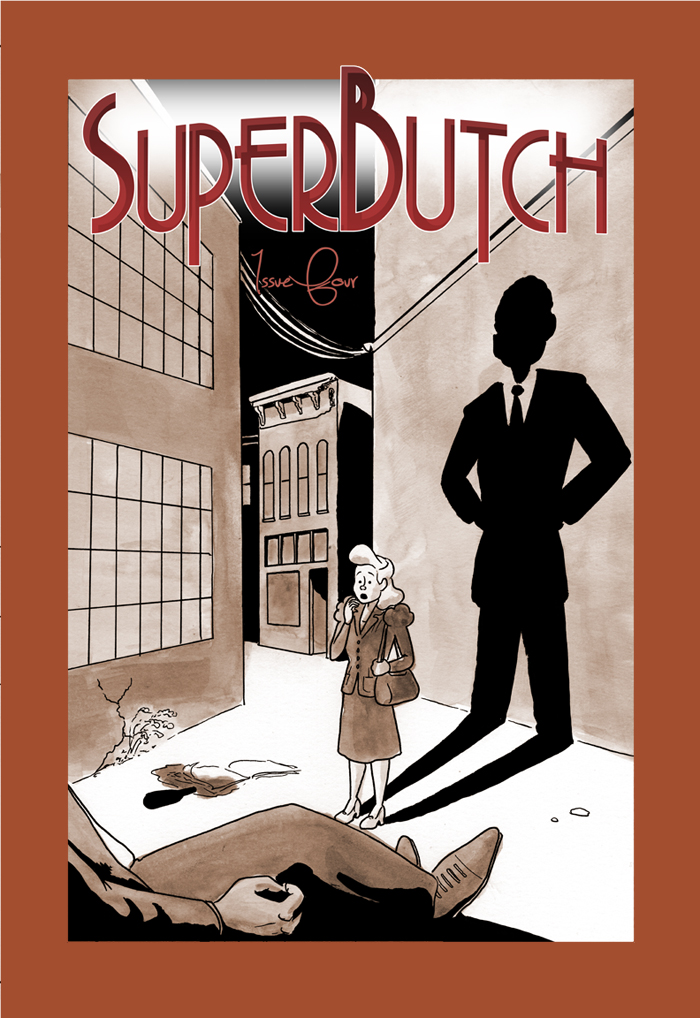SuperButch is a graphic novel in progress about a lesbian superhero in the 1940s who protects the bar scene from corrupt cops, and about the women in the community SuperButch protects.