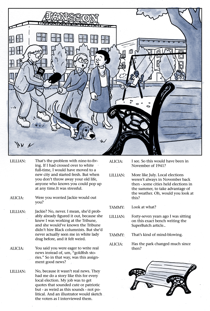 SuperButch is a graphic novel in progress about a lesbian superhero in the 1940s, and about the community she protects.