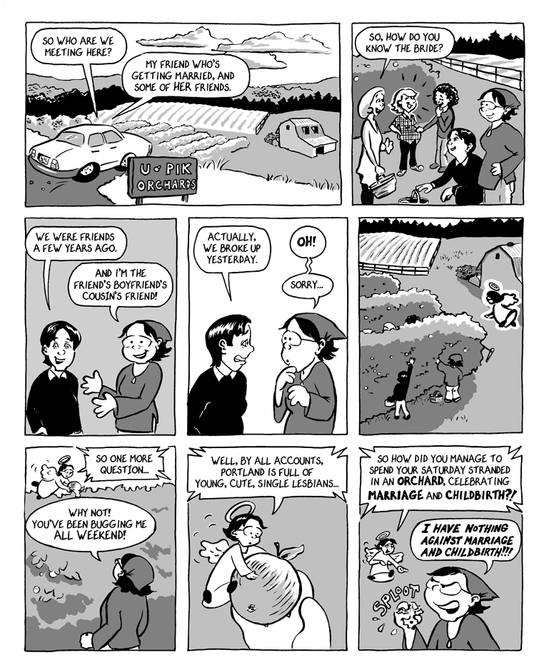 36 pages of Portland diary, starring Becky and Shoulder Angel as they tackle bike commuting, comic conventions, flirting (or not), and the eternal question of what it means to be an adult.